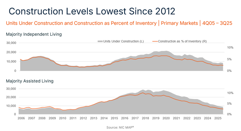 - For both IL and AL properties, the number of units under construction continued to decline, falling to only 17,000 units combined in the third quarter, levels last seen in early 2012.