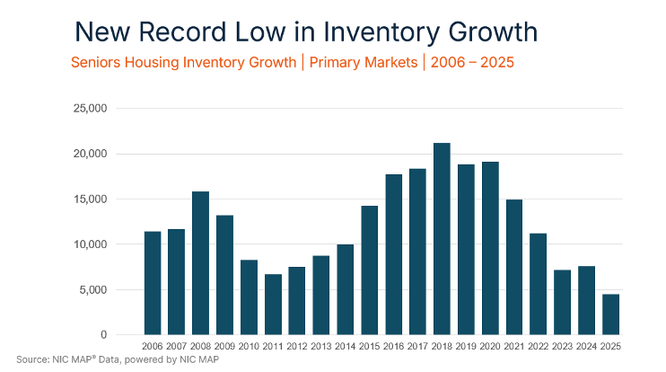 For years, the industry debated demand: Is it here yet? Is it strong enough? Is it sustainable? The current demographic momentum has tempered that debate. Senior housing is no longer defined by questions of demand; it is now constrained by the availability of supply. And that shift changes everything.